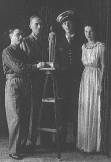 Angel Tarrac in his studio (left), with a client, France, circa 1940.