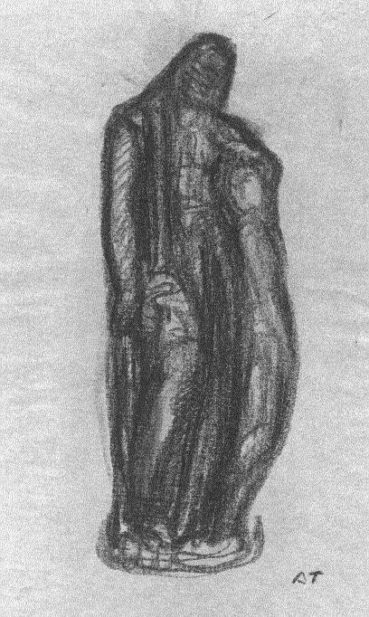 Angel Tarrac, Cold Afternoon (C), 4 1/2 x 12 inches, charcoal, circa 1946, artist's collection