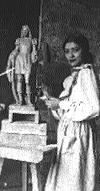 Nora with "San Miguel Arcangel" by Angel Tarrac, circa, 1947, ATVM files.