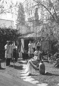 Nora Tarrac posing for a group of painters, possibly at the Artists Ranch ("El Rancho del Artista"), Mexico City. Foto Mantel.