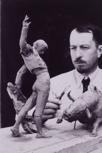 sculptures "Estocada". A bullfighter interacting with a bull.