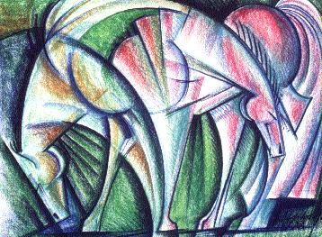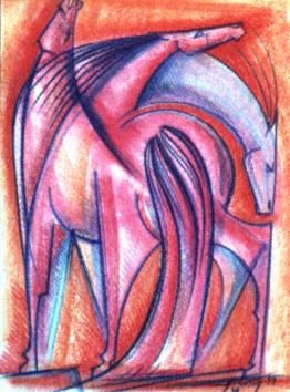 Geometric Horse, Bill Anderson, pastel, 22" x 30", 2000, Vincent Price Collection.